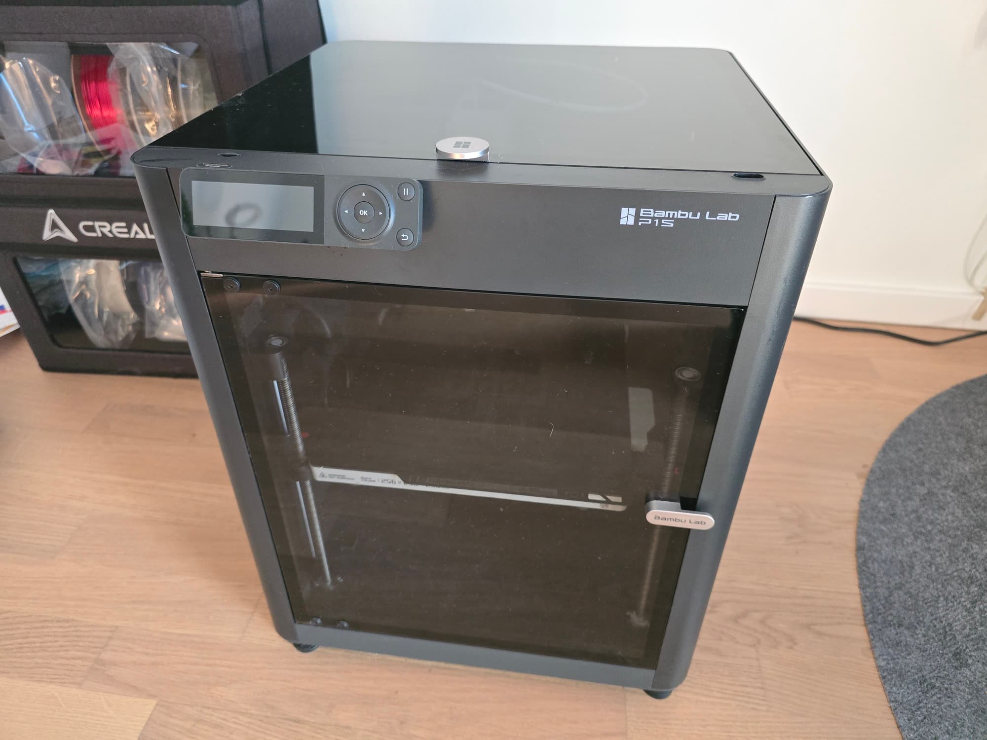 After doing some additional research, I've made a decision to go with Bambulab P1S. It was a bit cheaper by itself, plus a temporary a discount was available. I needed the case, because my wife told "There'd better not be any stinky fumes — or else!" (spoiler: it stinks anyway), and also I didn't want to fight dust. So Bambulabl A1 was out of the question, so was the flagship Bambulab X1 Carbon, (it's almost the same, but with that fancy looking LCD screen). A simple grayscale LED screen was enough for me, and the other things I could do through the official Software.