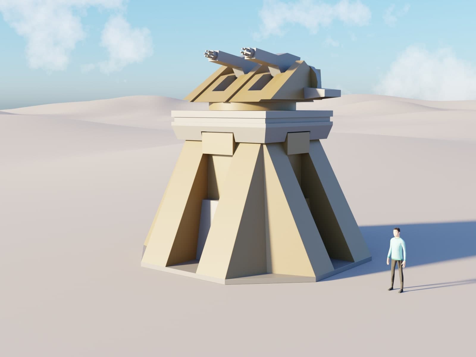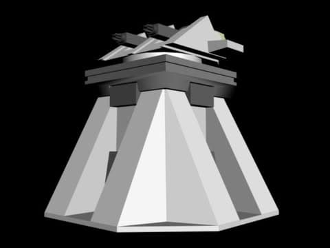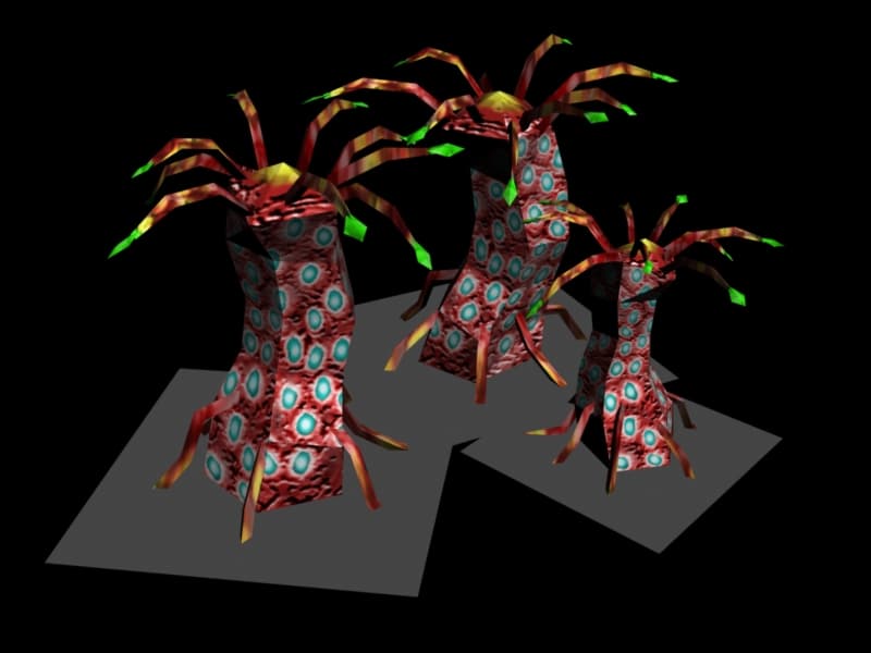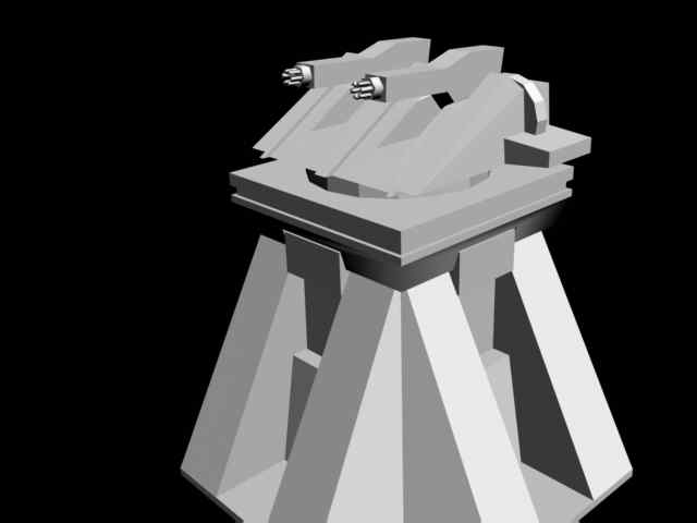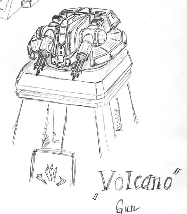 The volcano defence gun was the only structure that was a working unit in-game, without textures of course.