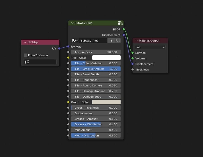 So, I've purchased a course by CG Masters and made this fully-procedural Blender material that renders ceramic subway tiles. It supports a variety of options, such as