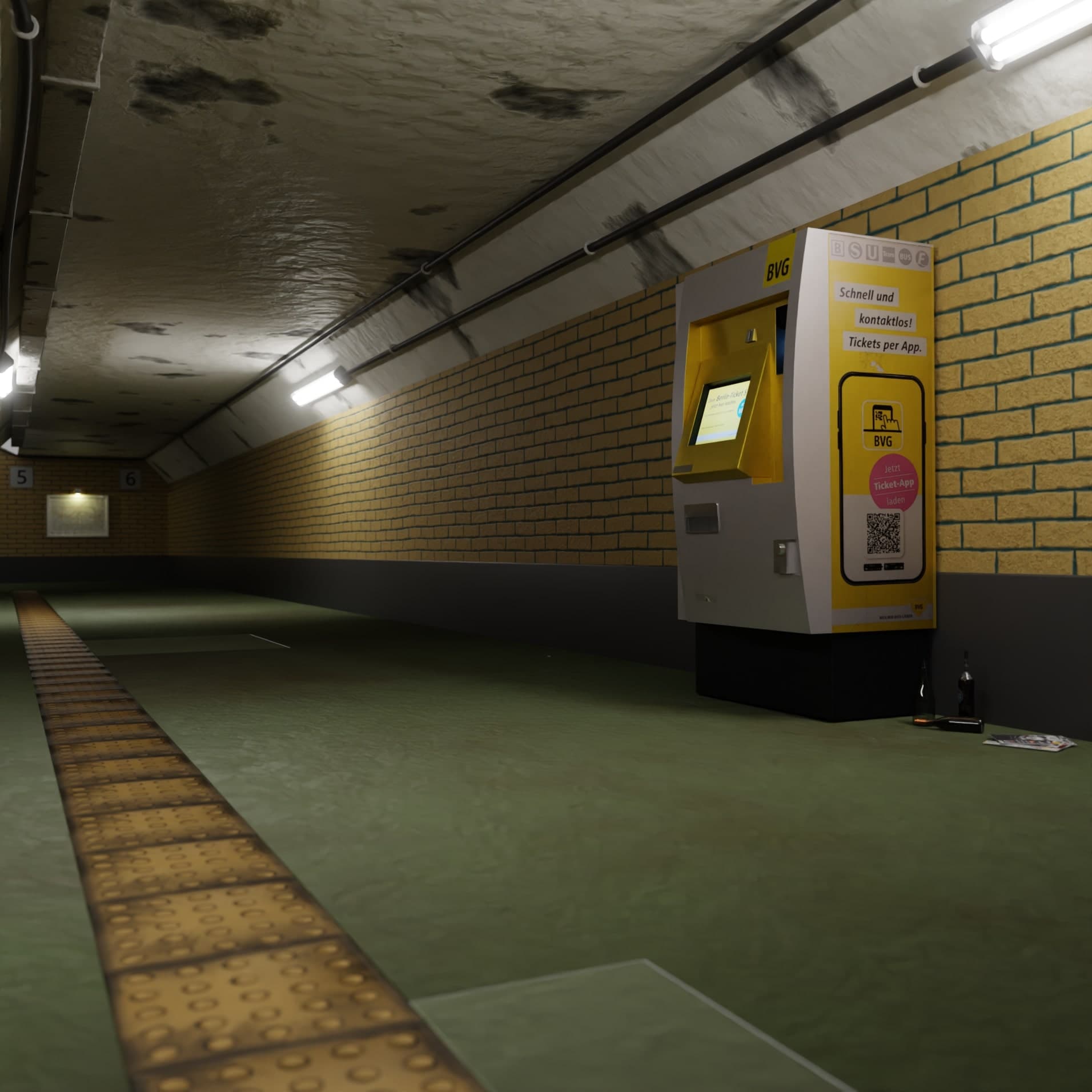 So I made it to a certain point, added a few custom things (for instance, a LED screen I took a picture of in the Berlin's subway, a ticket machine and models of some rubbish from Blenderkit) and decided to release it. Check.