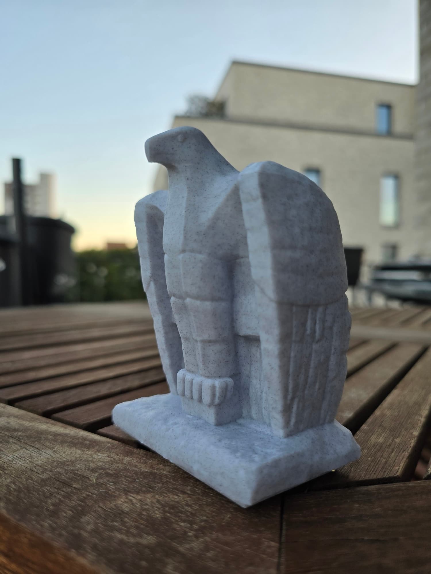 A proper way to "copy" a sculpture would be to scan it, but it's not like you can just launch a drone over the building in the middle of the city and take enough pictures to run photogrammetry. So, I've made a few shots of the statue, and that was the only way to "take it" with me.