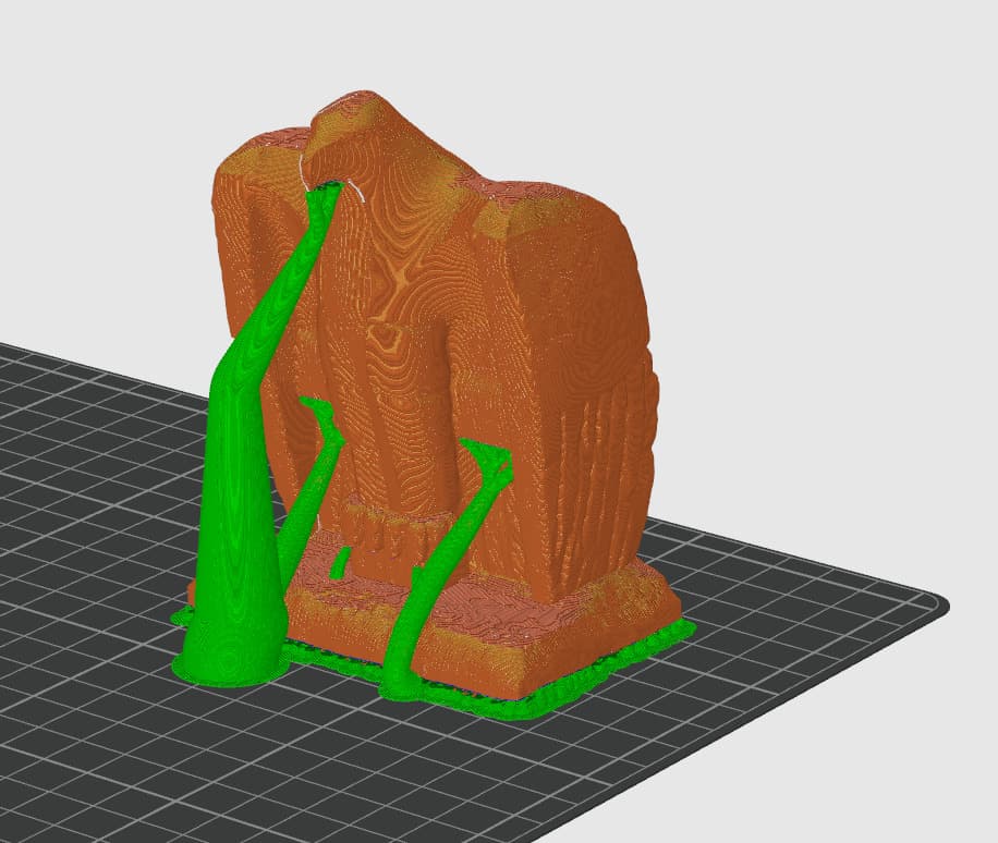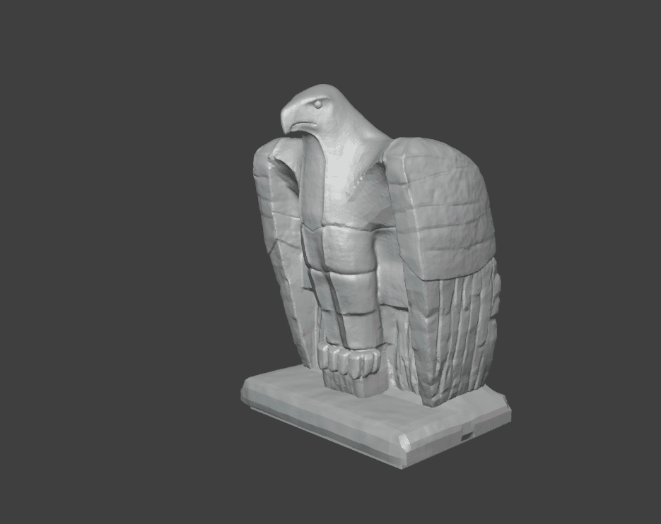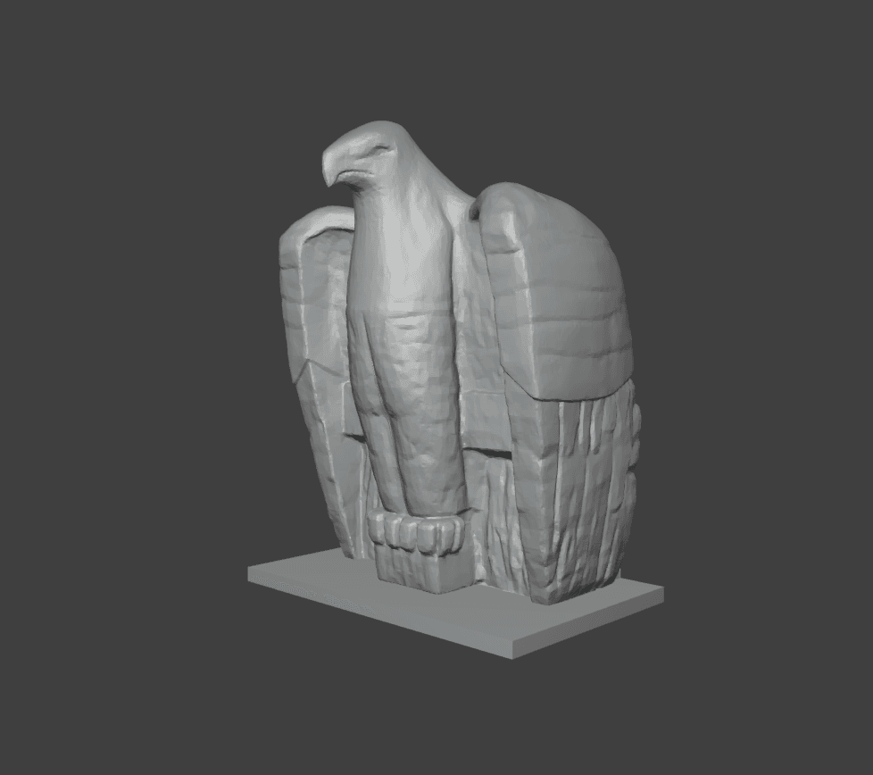 The feathers of the wings were a bit of a mess, and left them mostly untouched. To let the model stand after printing, I had to add a small base.