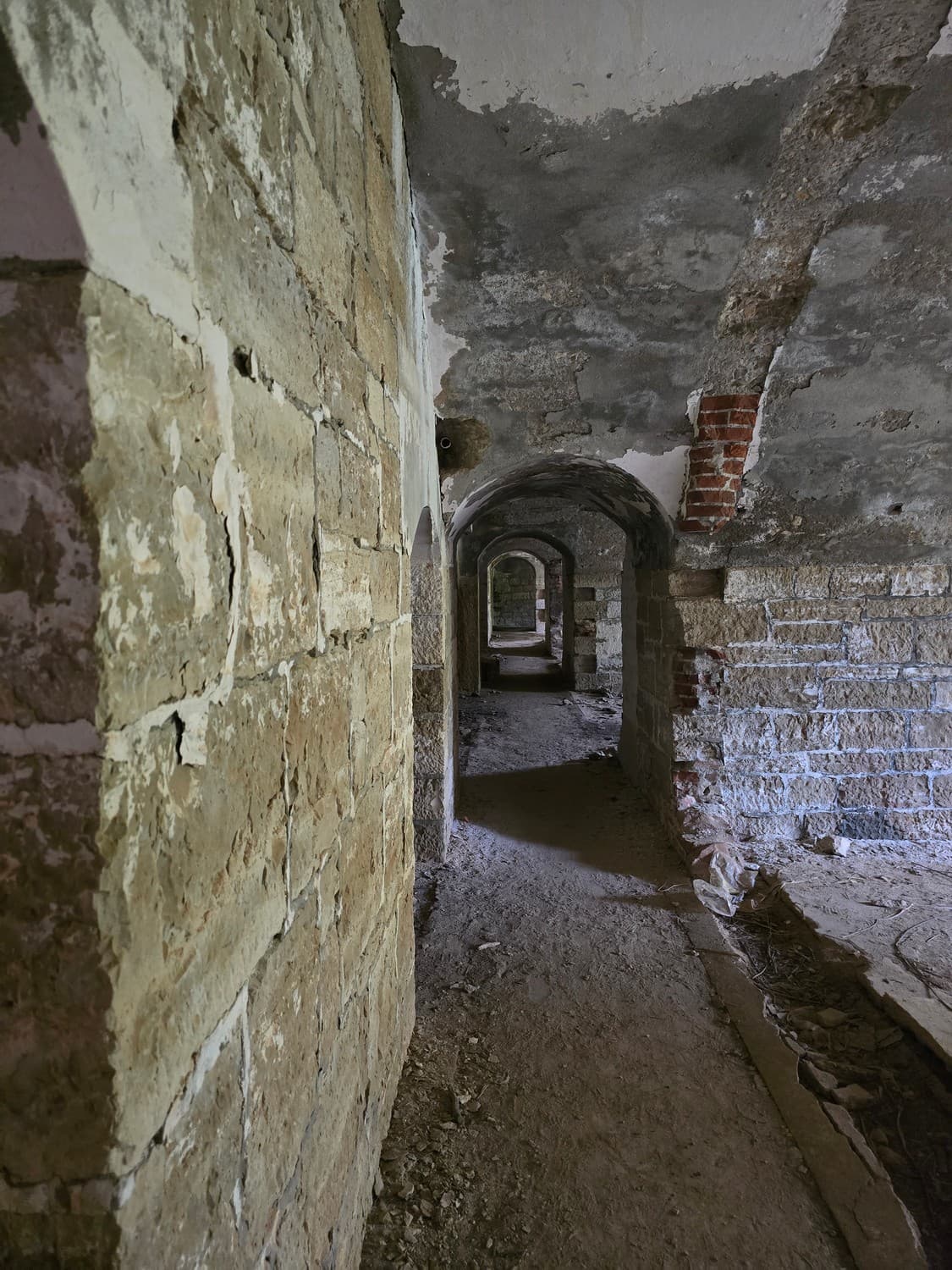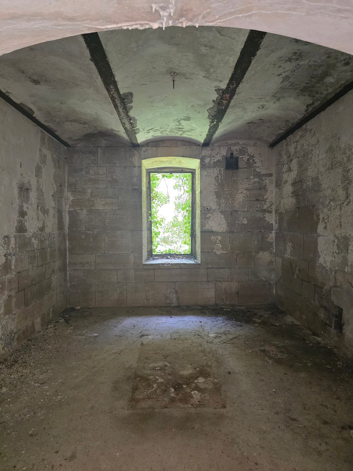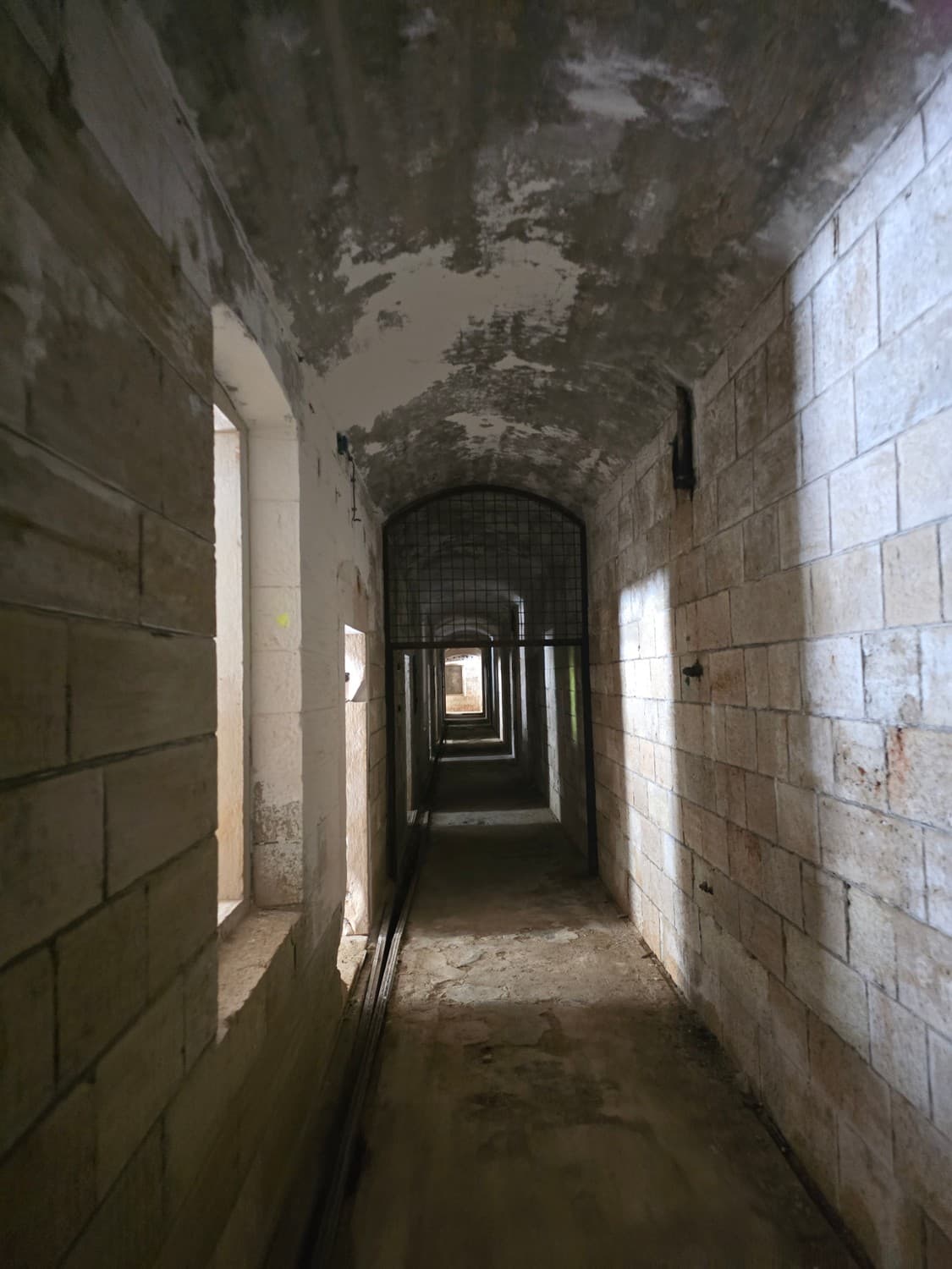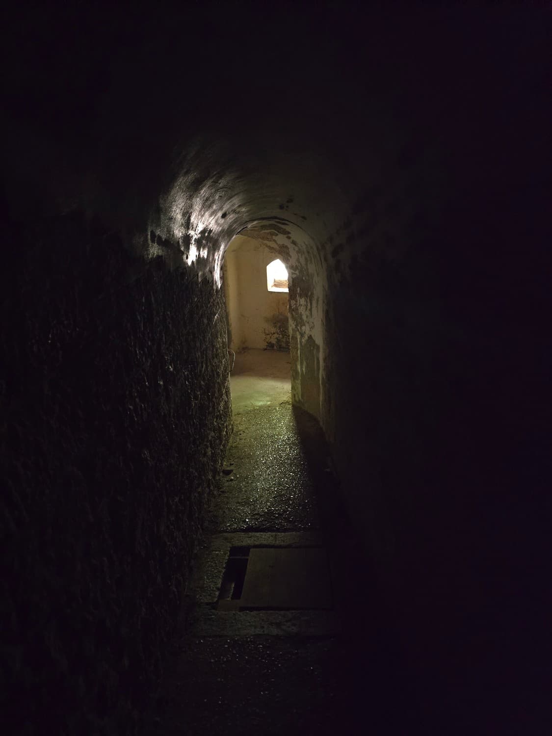 If you are brave enough, and you have a flashlight, go check out something that can tickle your nerves a little. There is a long dark narrow passage on the first floor, that ends with a small room with a set of narrow embrasures. Thats the front (enemy facing) caponier - a room that allowed the defenders to fire at the enemy trying to storm the walls of the fort.