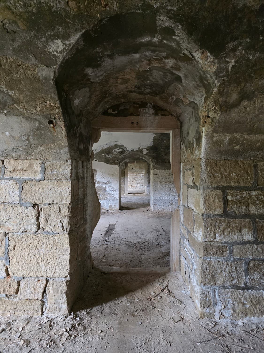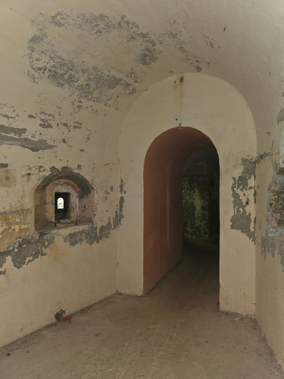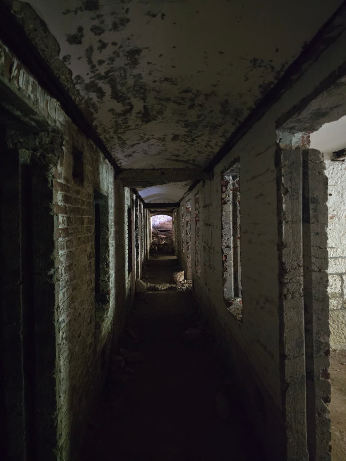 If you are brave enough, and you have a flashlight, go check out something that can tickle your nerves a little. There is a long dark narrow passage on the first floor, that ends with a small room with a set of narrow embrasures. Thats the front (enemy facing) caponier - a room that allowed the defenders to fire at the enemy trying to storm the walls of the fort.