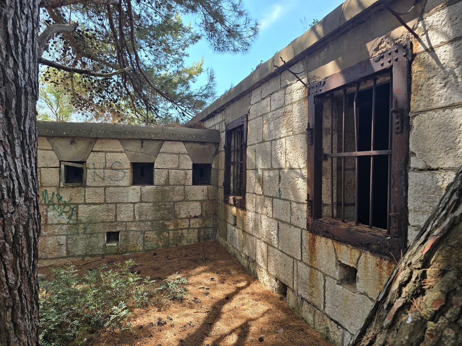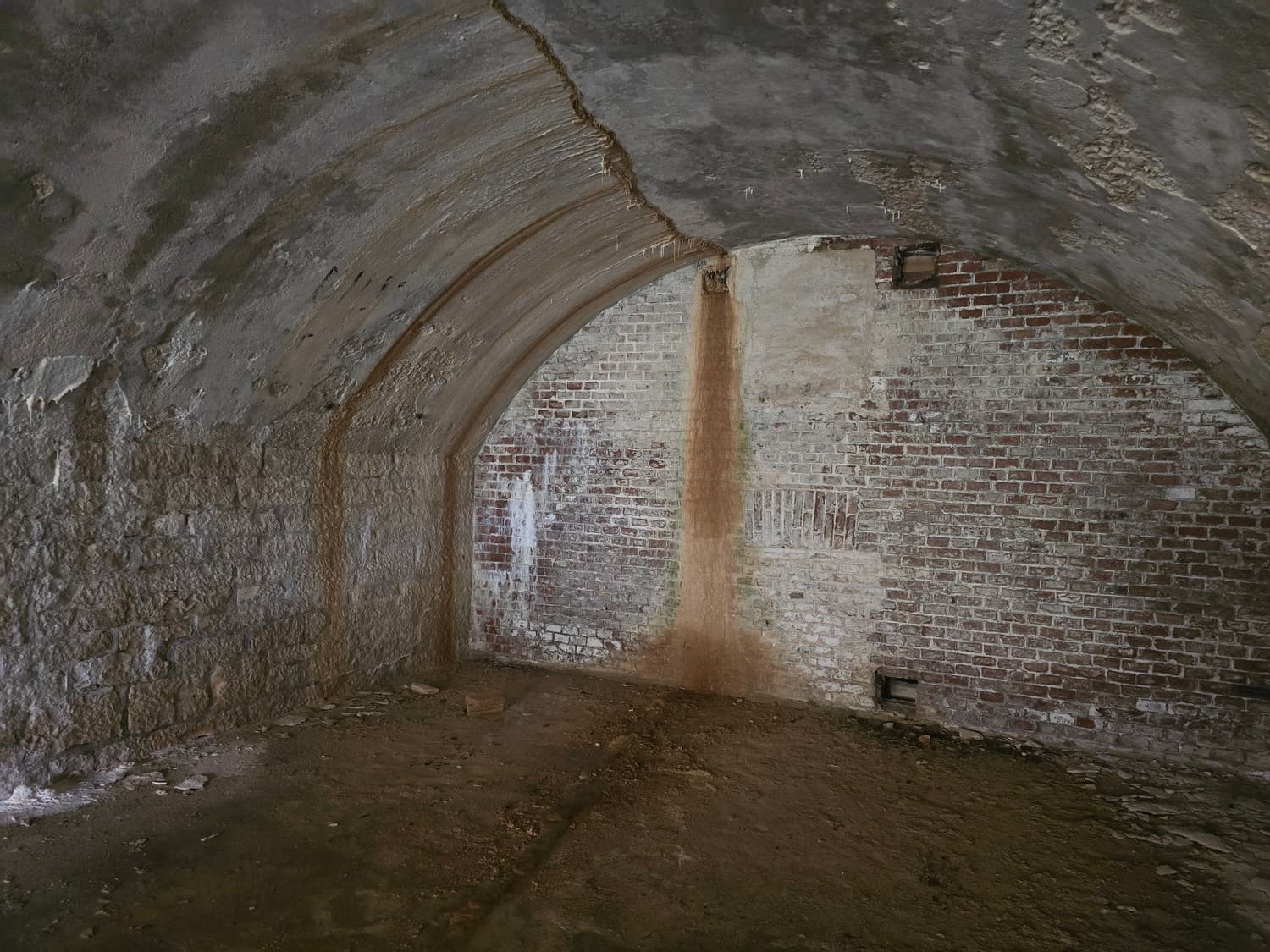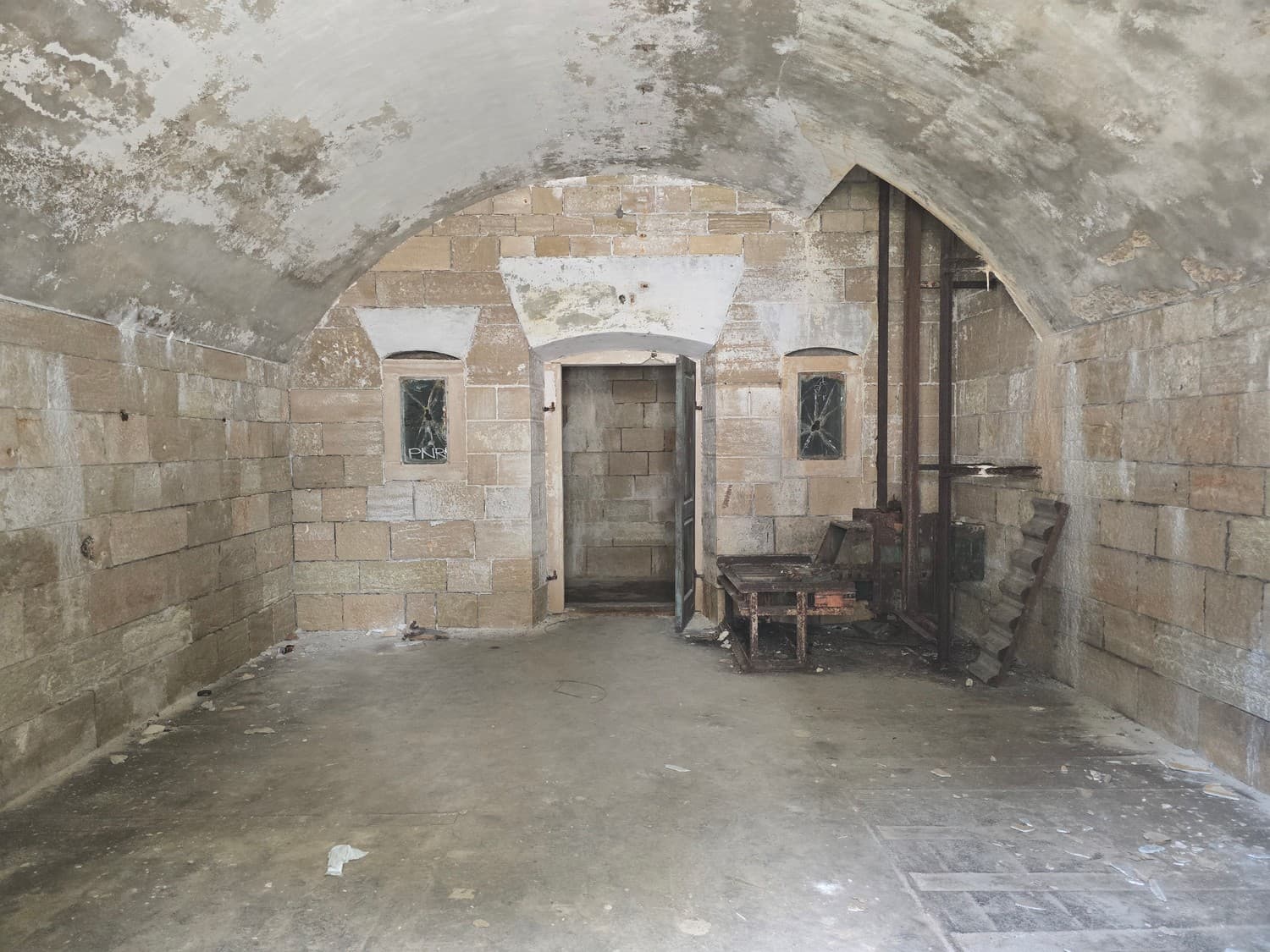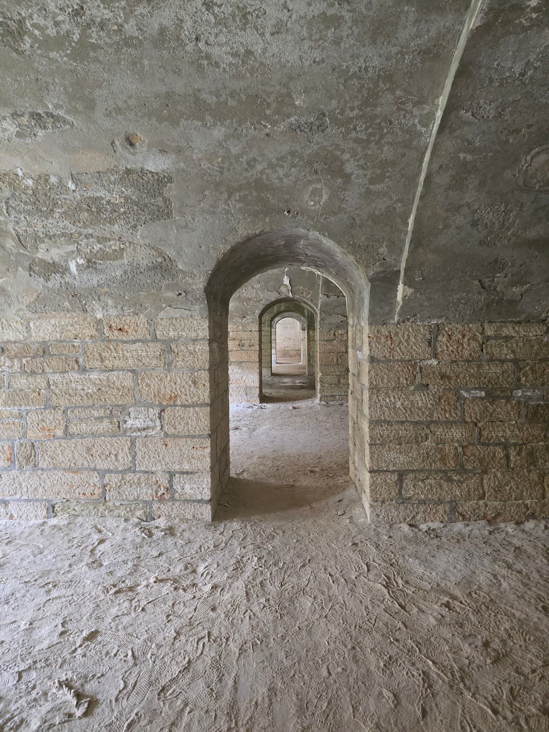 If you are brave enough, and you have a flashlight, go check out something that can tickle your nerves a little. There is a long dark narrow passage on the first floor, that ends with a small room with a set of narrow embrasures. Thats the front (enemy facing) caponier - a room that allowed the defenders to fire at the enemy trying to storm the walls of the fort.