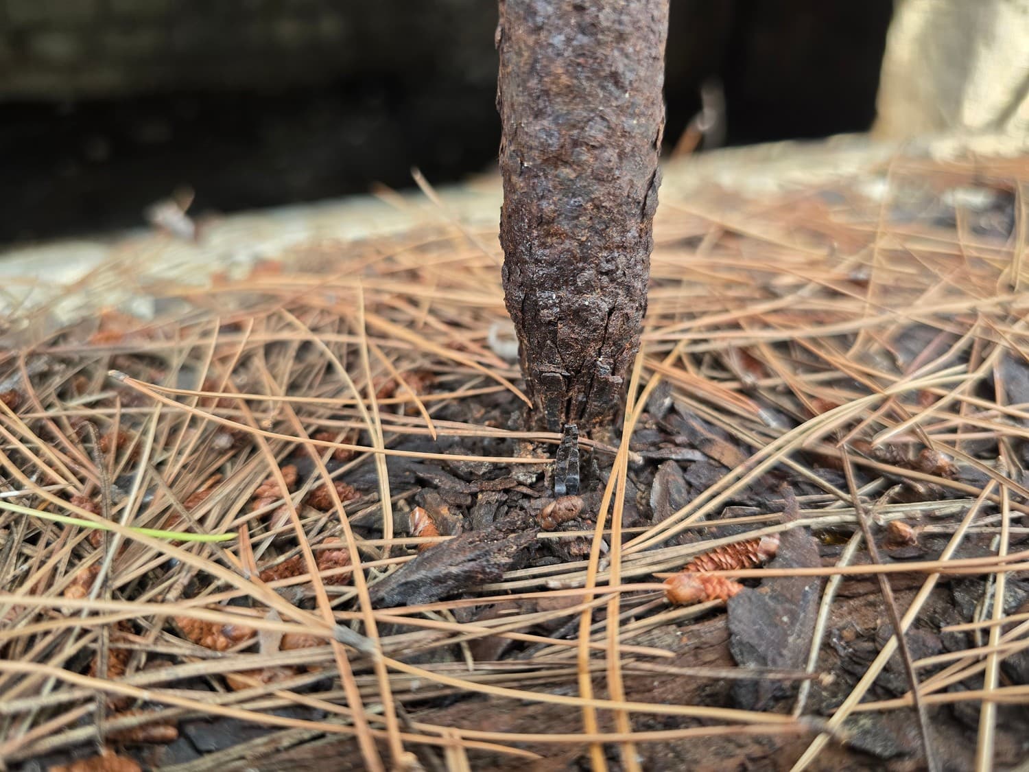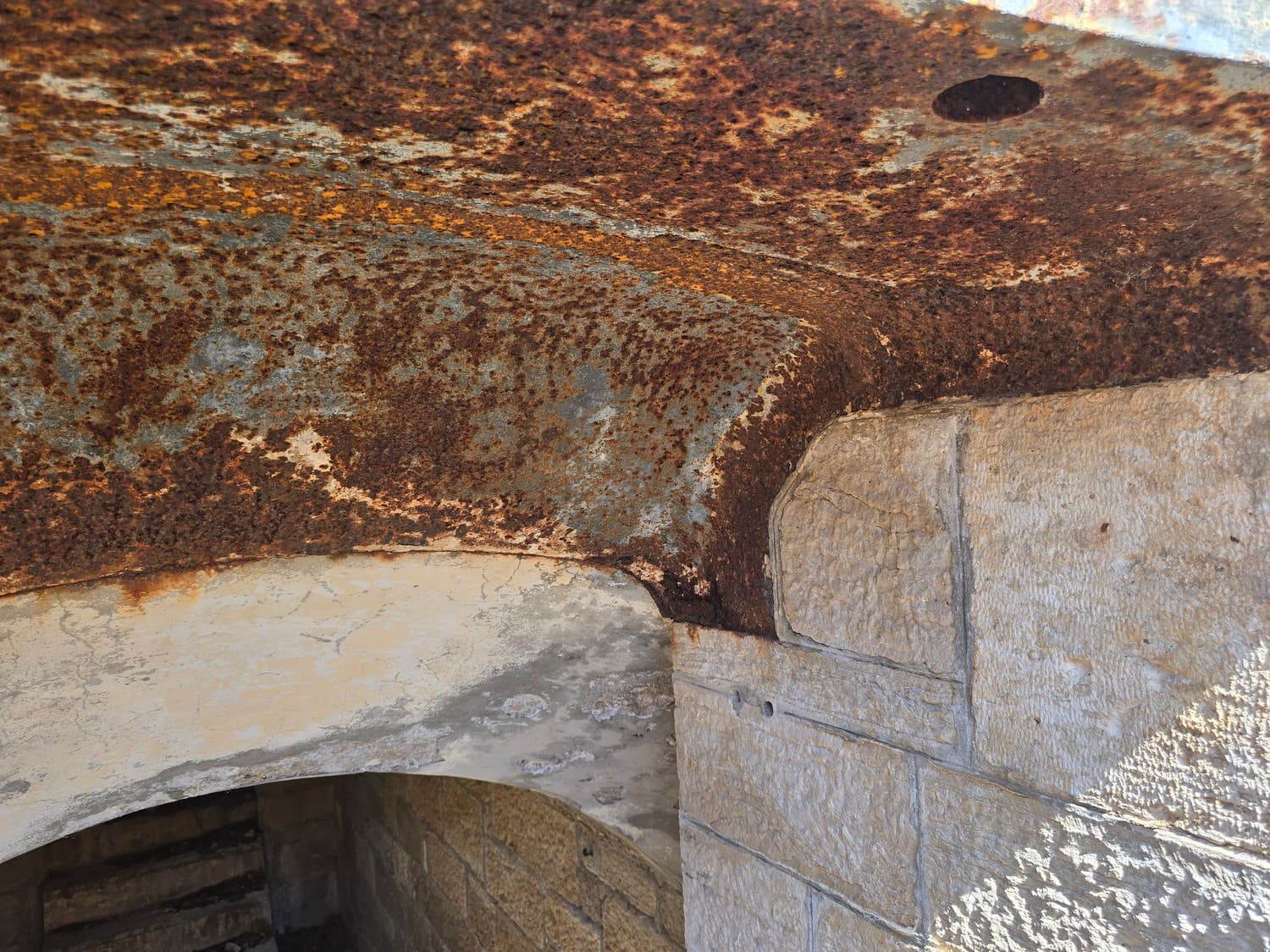 After talking to ChatGPT about this little discovery we've come to a conclusion that upon exposure to humid salty air the metal and the stone being in constant contact with each other, form a kind of a galvanic cell, which accelerates the corrosion process.