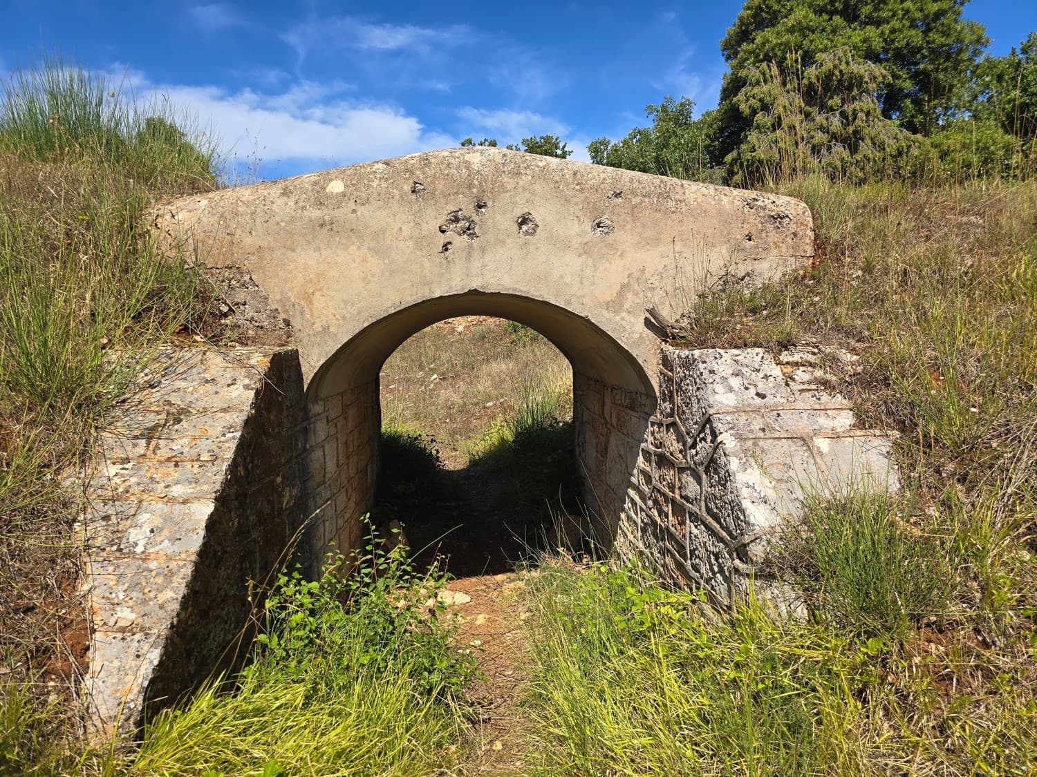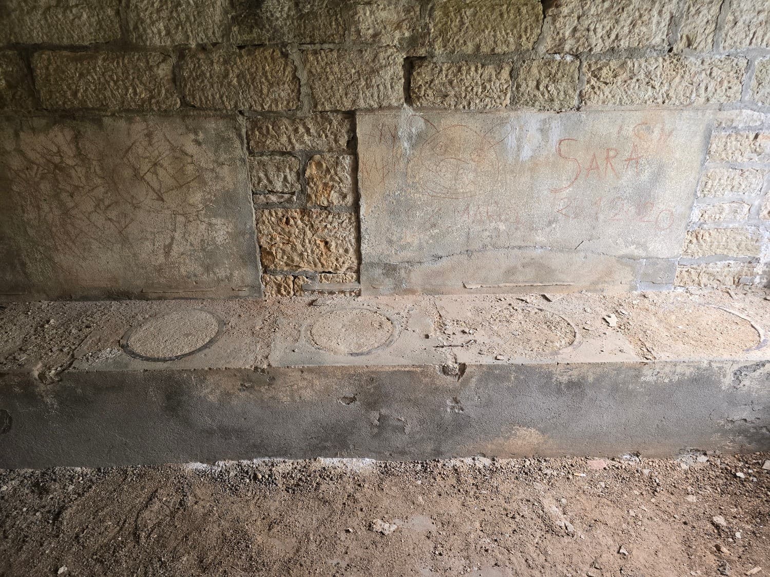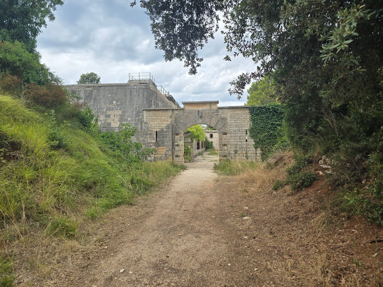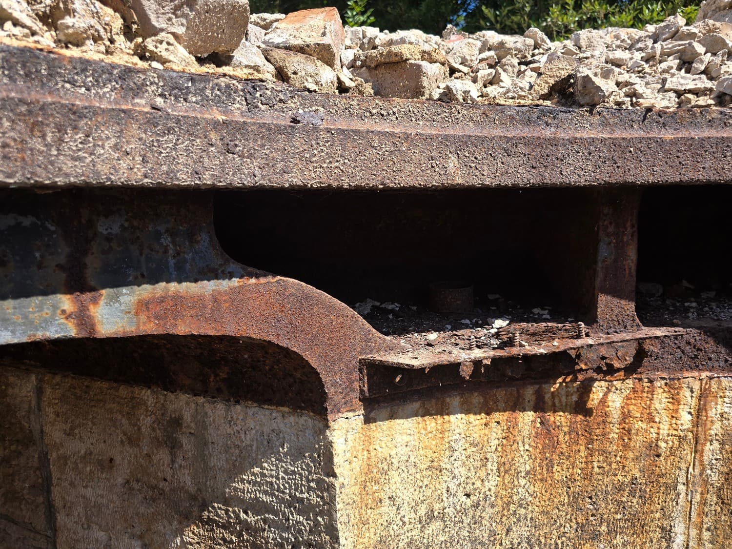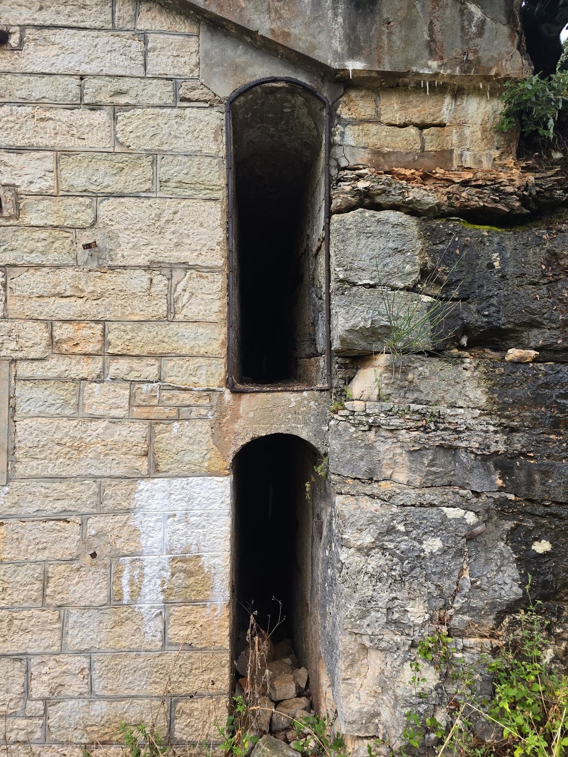 So, somewhere at the beginning of the 20th century the fortifications across Europe were upgraded with concrete roofs. I guess, in case of fort Benedetto, its fire platforms fell victim to the upgrade. The southern gun platform had a gun hangar next to it, and upon giving the upgrade they didn't even bother removing the rails: the rails just went straight under the concrete slab. It's not like people hoped to remove the protective cover one day, bring the guns back and resume like nothing had happened, is it?