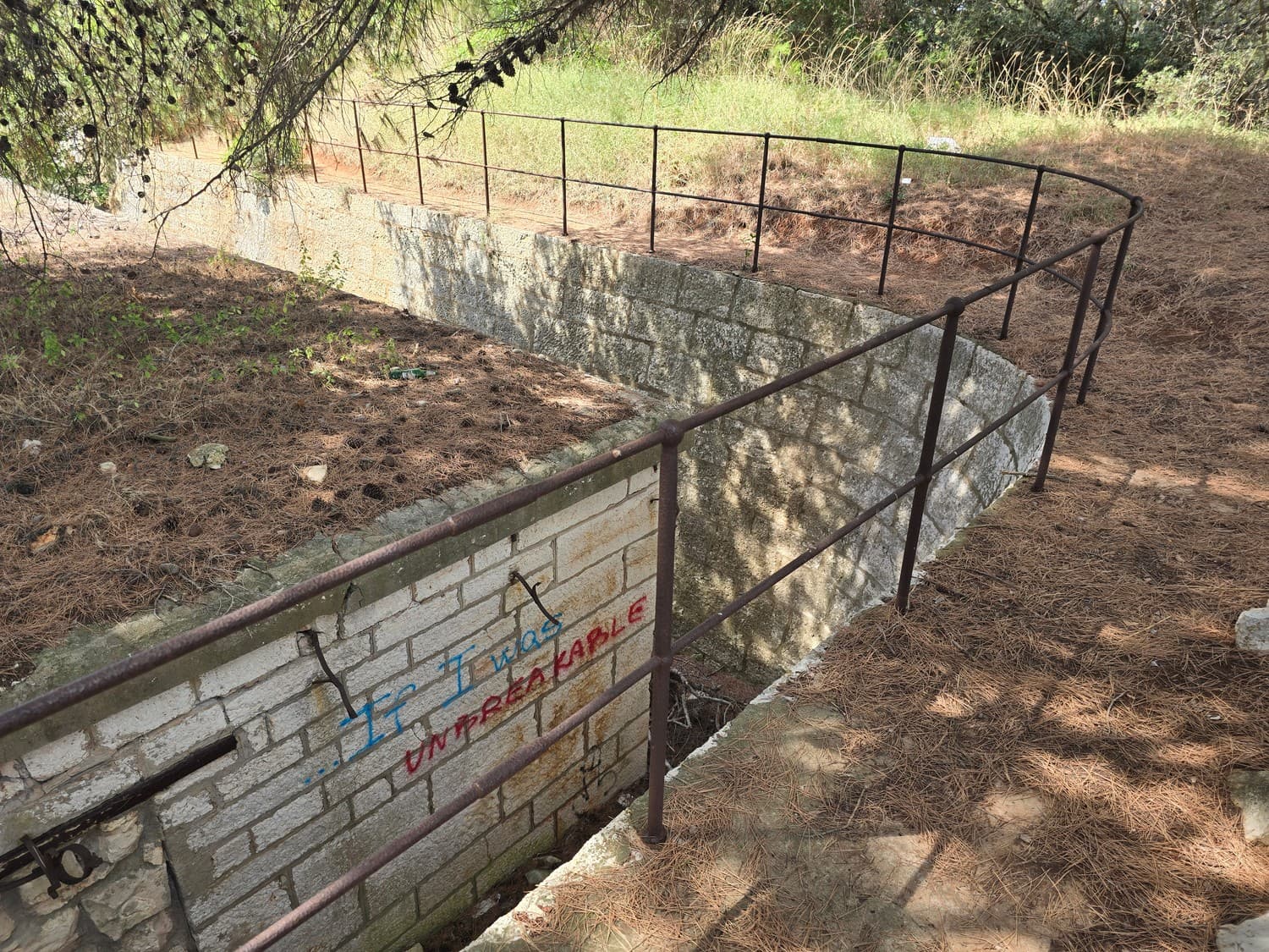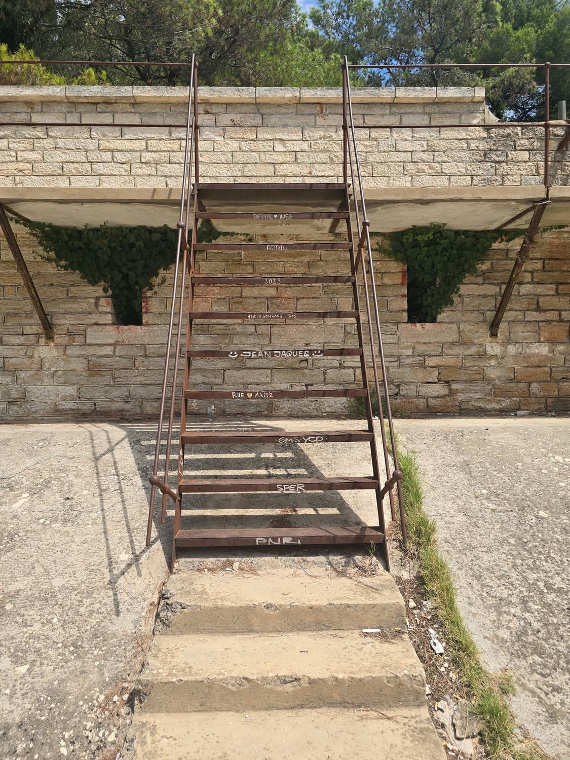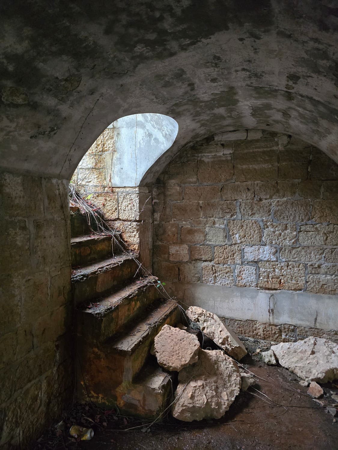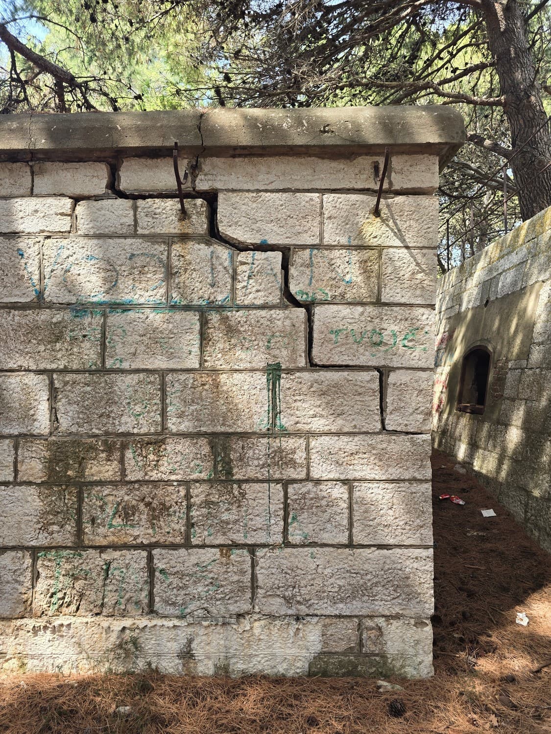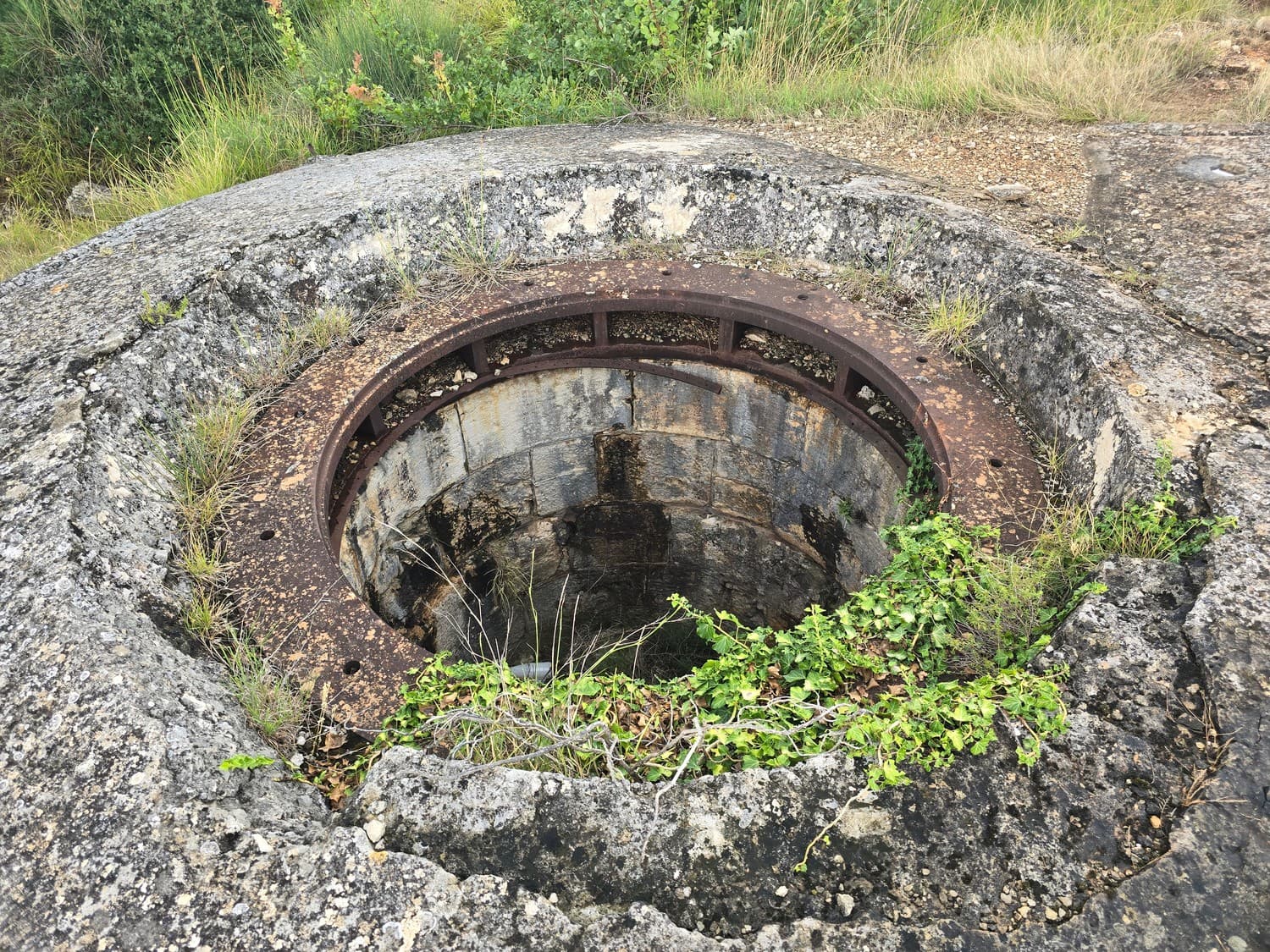 So, somewhere at the beginning of the 20th century the fortifications across Europe were upgraded with concrete roofs. I guess, in case of fort Benedetto, its fire platforms fell victim to the upgrade. The southern gun platform had a gun hangar next to it, and upon giving the upgrade they didn't even bother removing the rails: the rails just went straight under the concrete slab. It's not like people hoped to remove the protective cover one day, bring the guns back and resume like nothing had happened, is it?