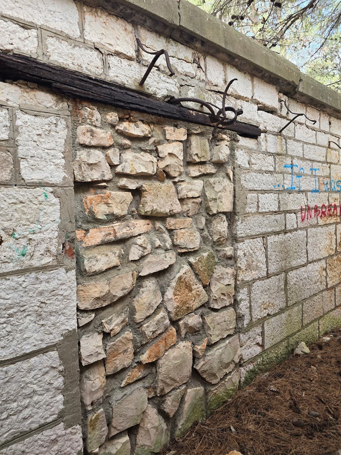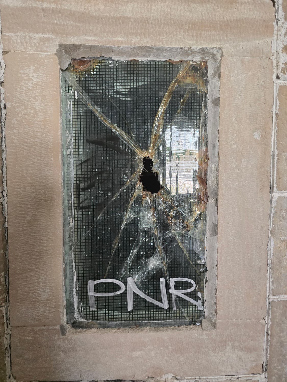 Someone was in a desperate need of having some bricks for their flower beds. You can still make out where the door passage had once been.