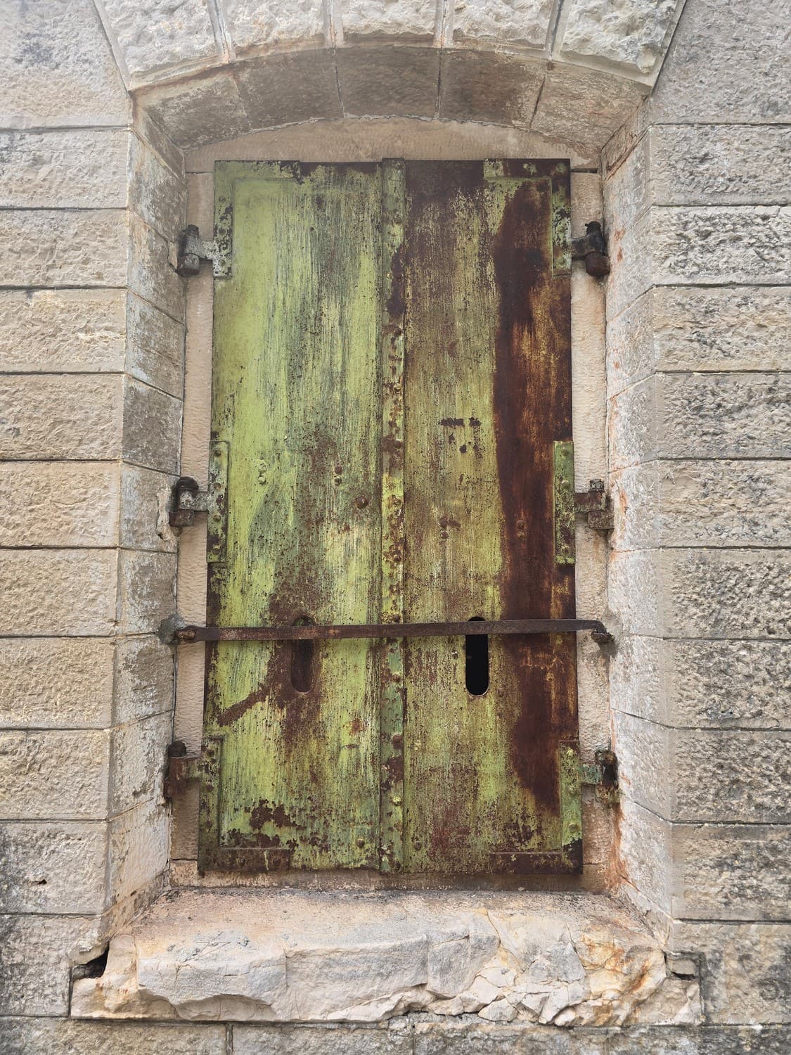 One remarkable thing that caught my attention was the way the metal parts, such as the window frames and grilles were rusted. The rust wasn't that deep on the thing itself, but when the metal part was in touch with the stone, it looked as if it was eaten away.