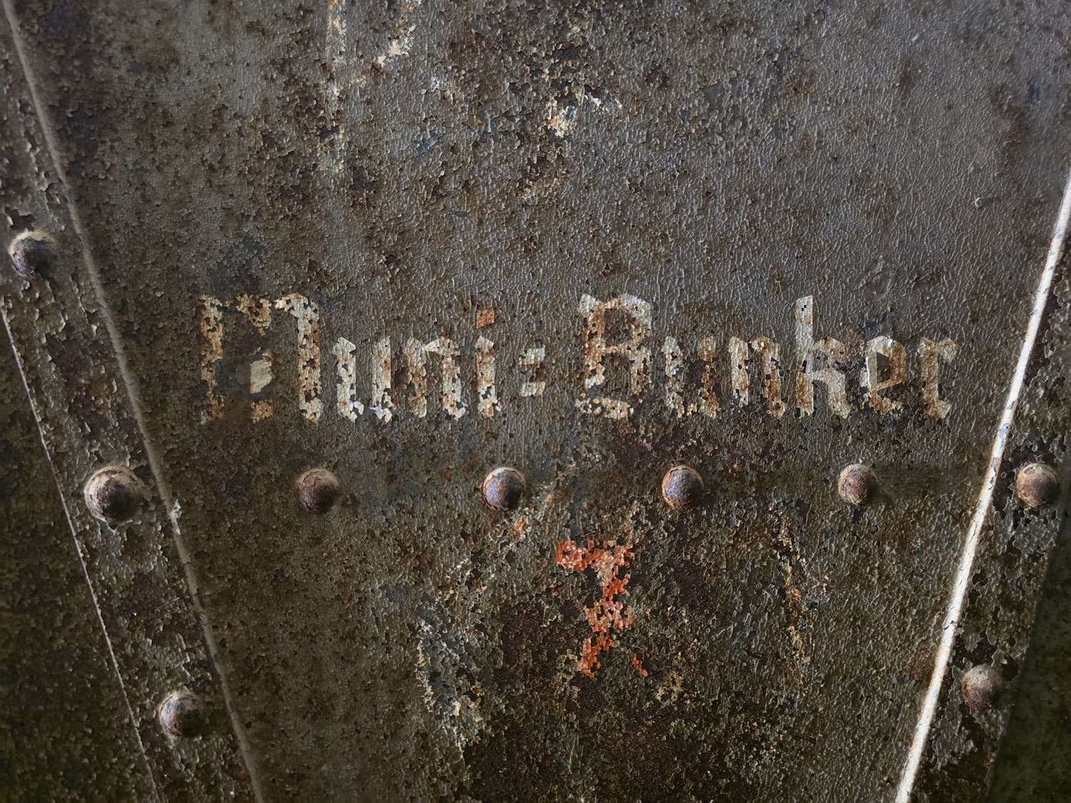 There are a some rooms that tell an interesting story. One of the rooms on the first floor has a metal door with a label "Muni Bunker 7". Apparently, there were several such bunkers, but only that one had an original door in place, the rest had ugly, shattered wooden doors that were obviously installed at a later period.