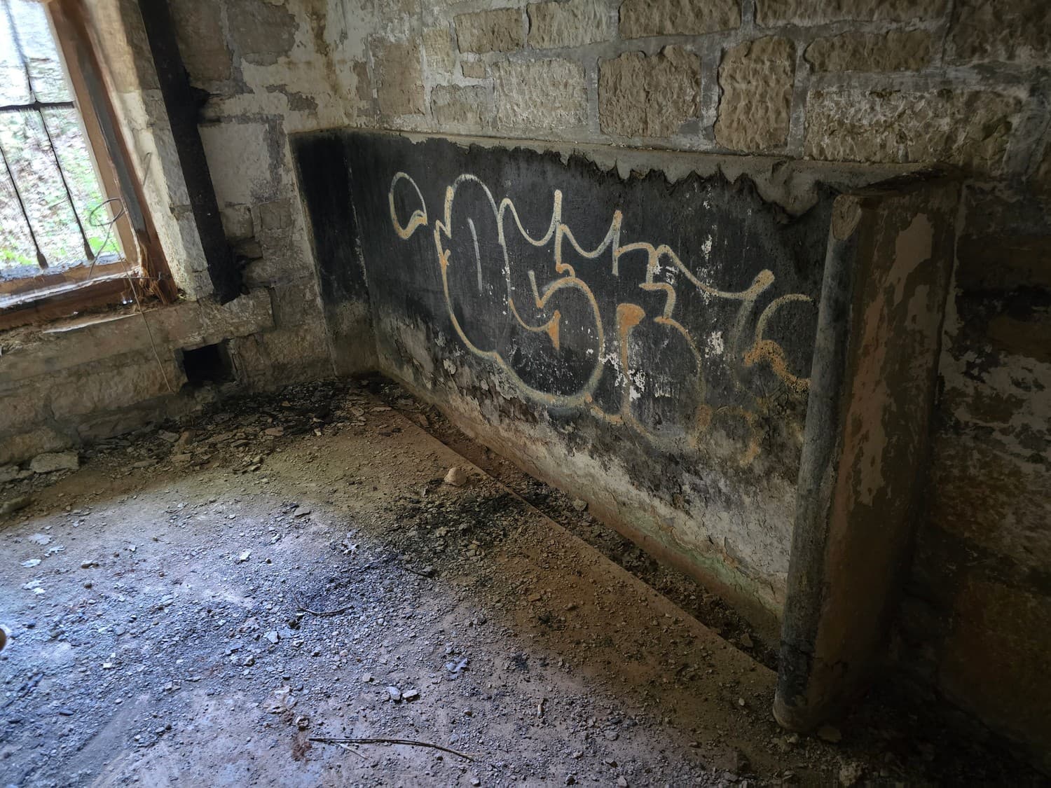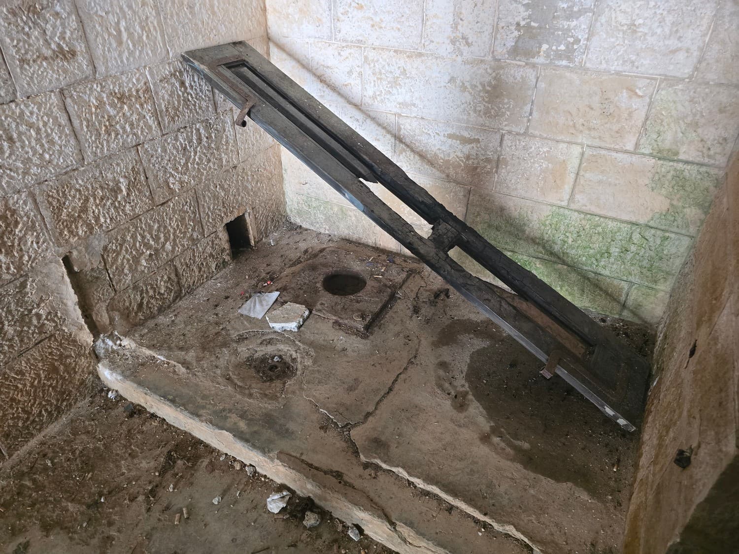 A very distinct room with the remains of something that was once definitely a toilet. That's where the soldiers took s**ts and perhaps forced the newly arrived to clean toilet pans with toothpicks.