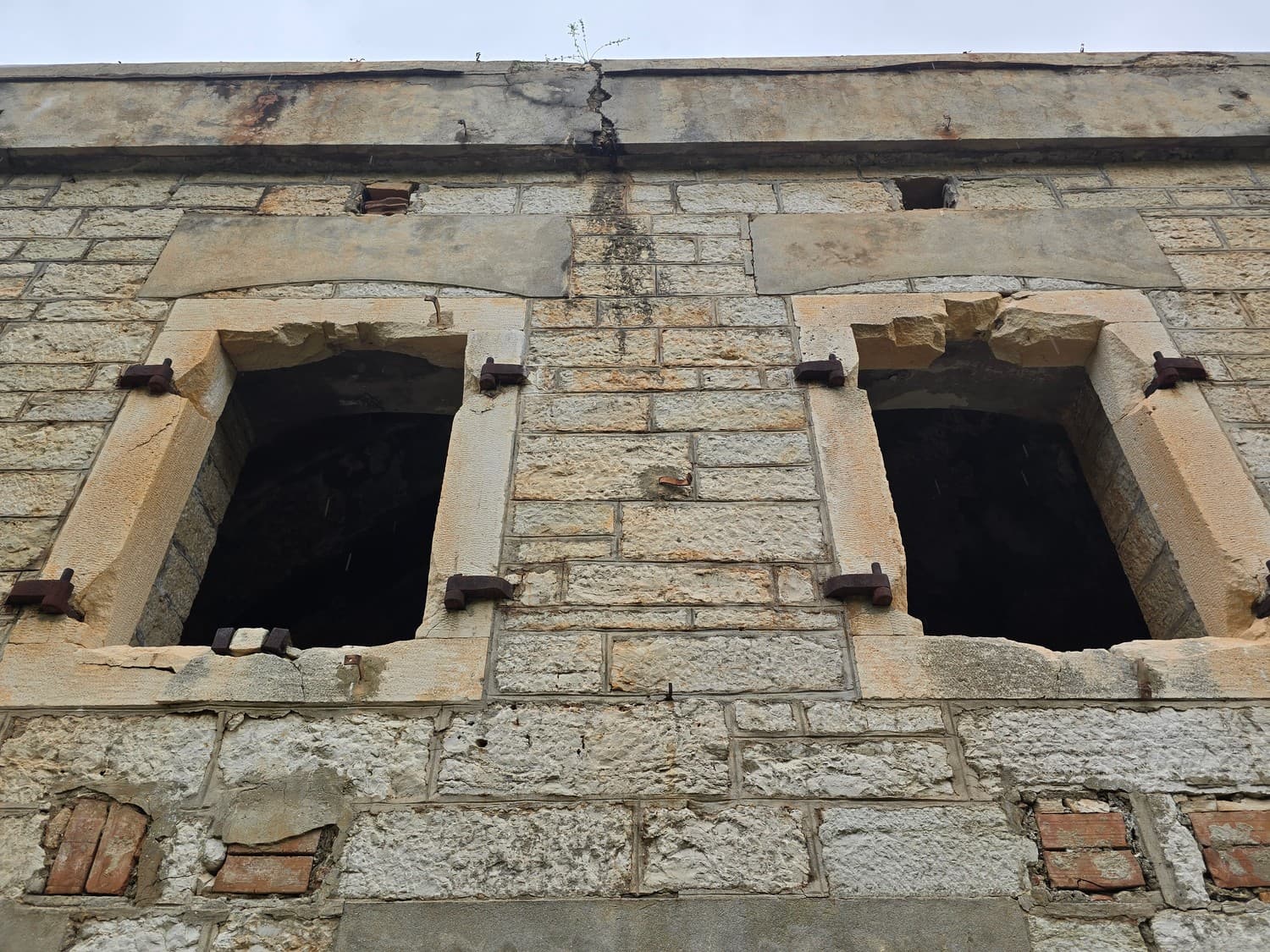 Certainly, the historical building wasn't asking for being restored and used as a cafe, it was screaming for it. However the structural damage was seen with a naked eye, and in order to fix it, a whole reassembly of the building may be needed: the stone blocks were not in place, the metal parts were deeply rusted, the concrete floor - shattered and unsafe to walk on.