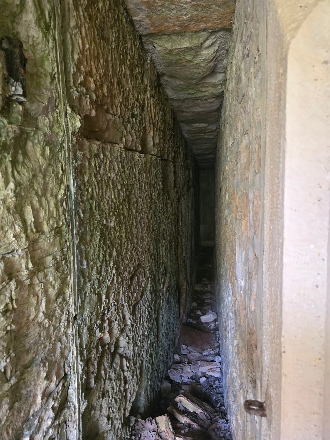 The building was separated from the earth or stone hill by a dry moat. Walking behind the building I was surprised not to find an improvised toilet there. The locals seem to be decent residents keeping the premises clean, I certainly give them that.