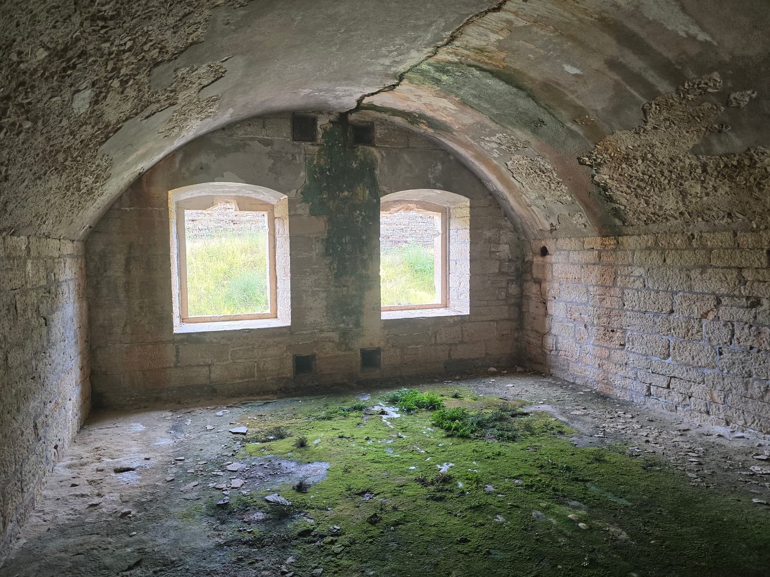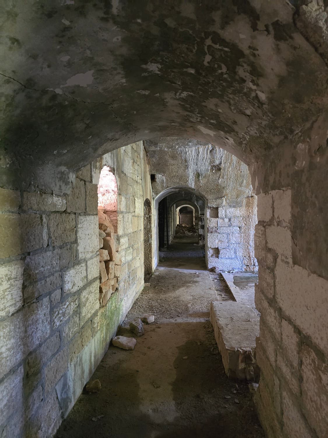 One thing really puzzled me while exploring the interiors of the first floor: windows facing the solid rock of the stone basin that was cut to fit the fort in.