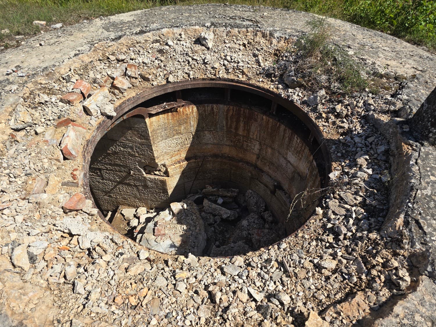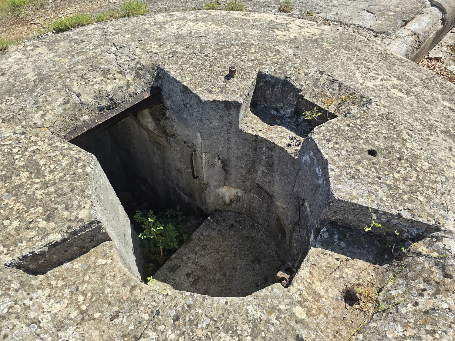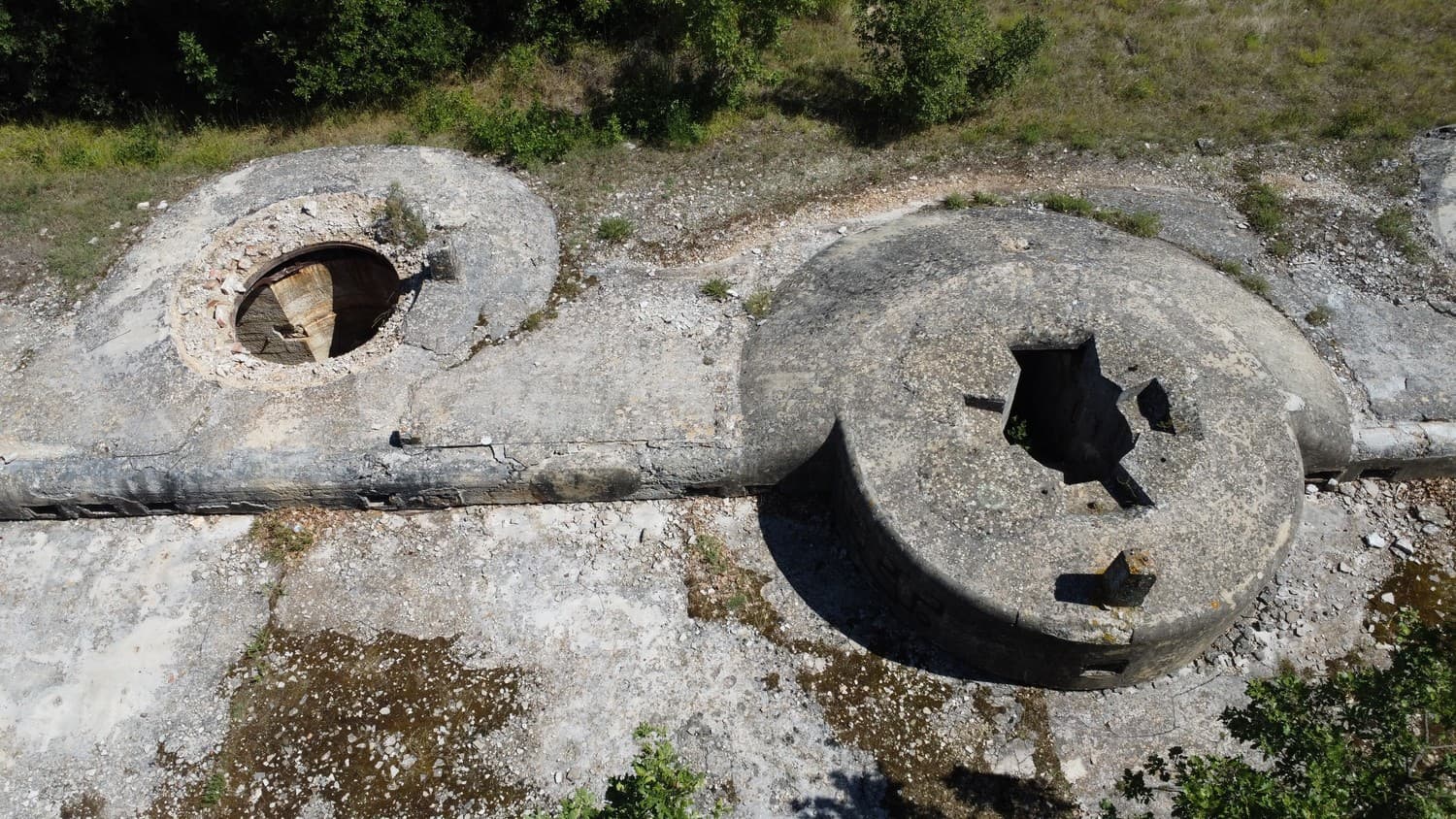 The photo below looks especially fishy, as if the destruction happened not so long ago, because the rough concrete edges look really fresh and there isn't any vegetation around. The metal ring seems to be missing, which is still present around a similar gun platform seen on the other photo above.