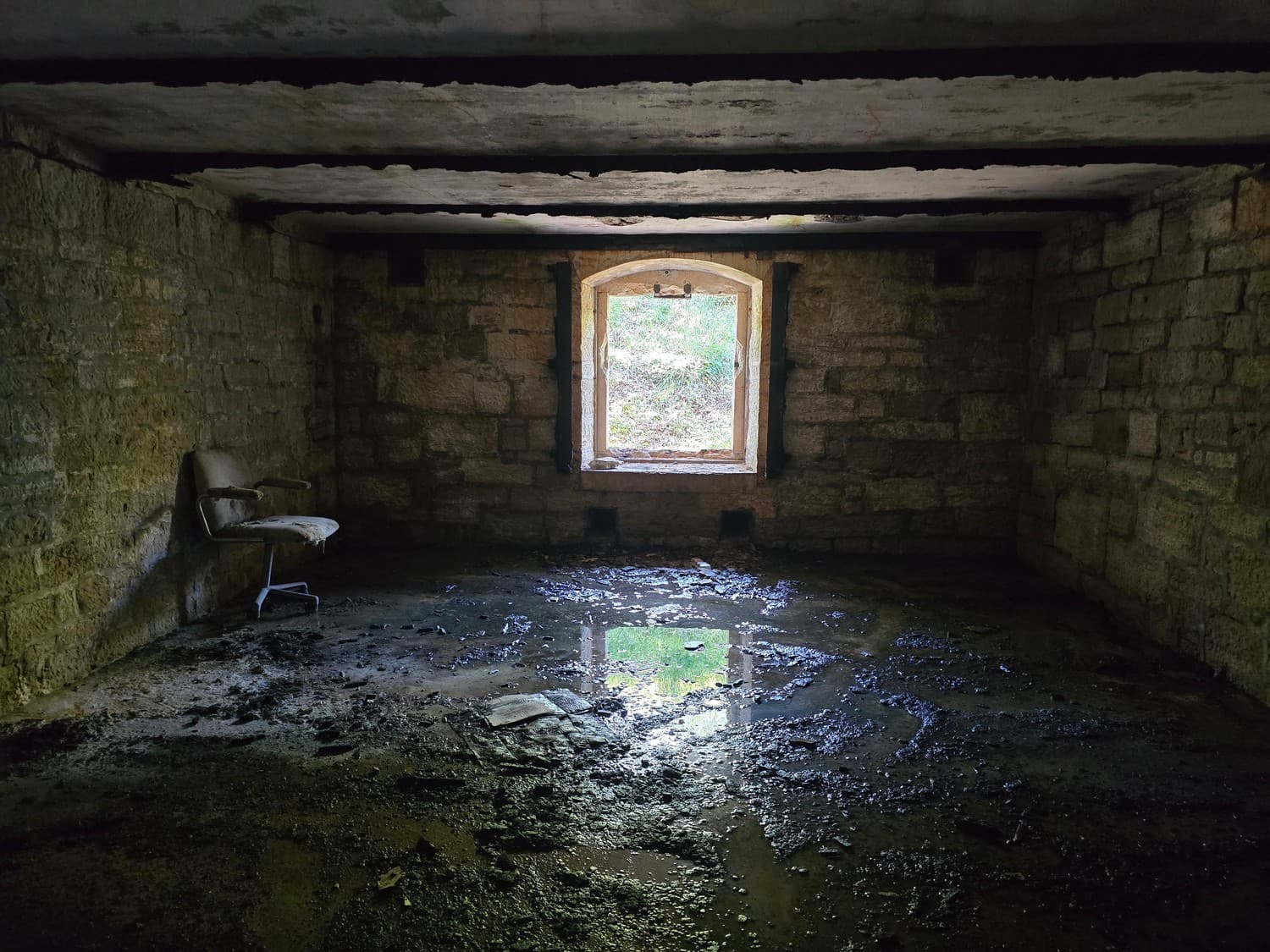 Below the first floor there seems to be a flooded basement, as I've seen in the other places.